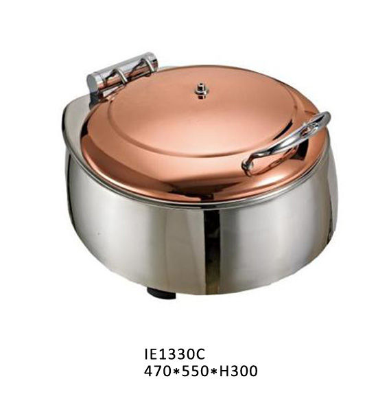Round Chafing Dish with Solid Hinged Lid (Bright Copper) #IE1330C